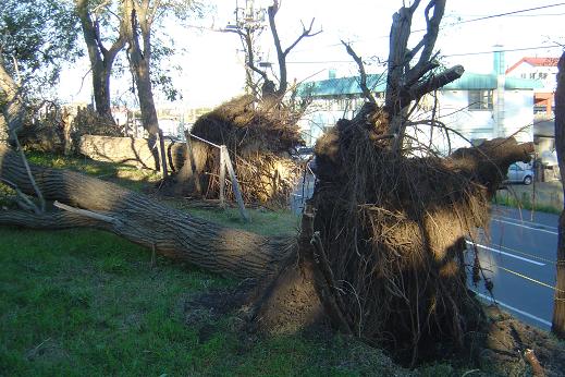 道路が寸断され、電柱が倒れ「陸の孤島」となる。