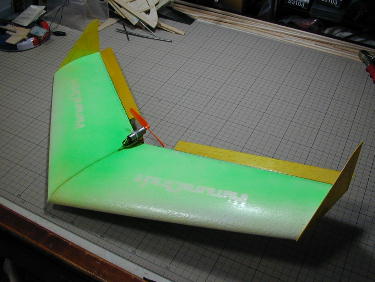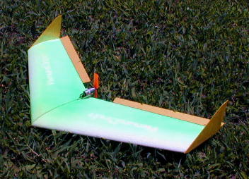 スペック 全長 290mm 全幅 580mm 全備重量 110g (機体74g バッテリー36g) 翼面積 8.1dm2 翼型 クラークY 受信機 Futaba R114F サーボ GWS Piko−STD×2 モーター GWSモーター(50XCの前のモーター) プロペラ GWS3020 アンプ シュルツ slim10be BATT 2セル 500mAhリチウム(携帯電池) 他の方の機体は50XCやブラシレスモーターなどを積んでハイパワー化していますが、 きむらクラフトではそれらより1ランクパワーの低いモーターを積んでフワフワと飛ぶ 機体としています。 それでもハーフスロットルでの水平飛行は楽勝です。 オリジナル のフライトムービーなどを見ると、グリグリとトリッキーな飛ばし方をしててますが、 とっても普通の飛び方....をしています。 発泡スチロールで出来た主翼にモーターマウントを兼ねた中央リブ、2oバルサの エレボン、1oバルサの垂直安定板がこの機体の全てです。 作り方は様々ですが、きむらクラフトでは中央リブは2oバルサ縦目で作り、モーター マウント周りのみ1ミリベニヤでサンドイッチしています。 ![]() 主翼の被覆は、梱包テープなどのウエットフイルムを使うのがオリジナルですが、 きむらクラフトでは発泡スチロールに軽くスプレー糊(住友M77)を軽く吹き付けて、 完全に乾かしてからミラクルフイルムをアイロンで貼っています。 スプレー糊を 吹き付ける事によって、フイルムの食いつきが格段に良くなります。 組み立て前、コアの状態の時にスプレー糊を吹き付け、完全に乾燥してから組み立て に入りました。 緑色のカラーーリングはフイルムの上からプラカラー(ミニ四スプレー)で塗装しています。 結構しっかり食いつくものですが、このカラーリングは失敗でした。 芝の緑色に見事に とけ込んで、低空で旋回させると機体が消えます...... |