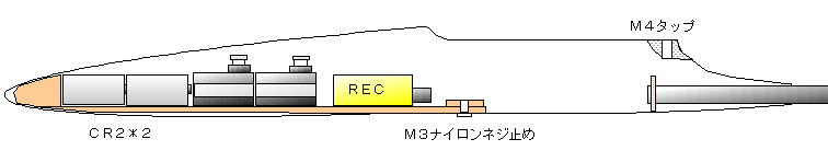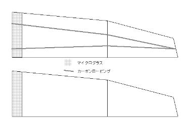 主翼上面に貼られたカーボンクロスに依って、高い剛性を確保しています。