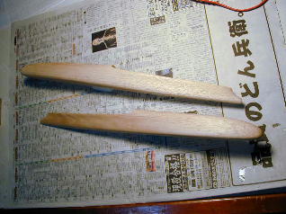 | オス型編3です。 カッターやヤスリ等で整形をした後、400番程度のサンドペーパーで磨き、 きれいになったところで左右を分割します。 分割されたオス型の表面にポリエステル樹脂を塗り、硬化したらペーパー掛け (水研ぎ400番−−>600番−−>1000番)を3回ほど繰り返して バルサの目を完全に隠し、コンパウンド等で磨き上げてつるつるに仕上げて下さい。 この面が最終的に製品の肌になります。 バルサの表面にマイクログラスや和紙、絹等を張り込むのも良いと思います。 ポリエステル樹脂は紙コップなどに少量を出し、使用する分だけにしてください。 多量に硬化剤と反応させるとあっという間にゲル状になり、使えなくなります。 気温も低すぎると逆になかなか硬化しません。 私は電気ストーブと段ボール箱を使い、簡易硬化ブースを作って対処しました。 また、匂いも大変ひどいので換気、家族の苦情等にも充分気を付けて下さい。 表面にクリアーウレタンを吹き付けるのもOKですが、アクリルスプレーなど ラッカー系の物は×です。なぜかどんなに離型処理しても剥がれなくなります。 |