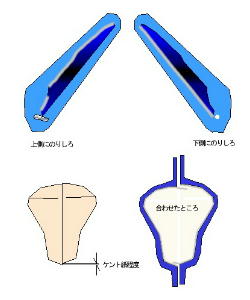 硬化した製品を左右別々に型から取り出し、整形後接着すると言った物でしたが、