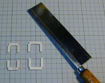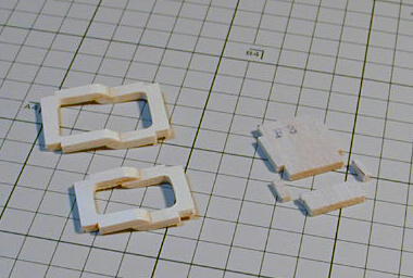 | スリム化した側板に合わせて胴枠のサイズを変更します。ベニヤ製の胴枠は 上下に分割して、側板に合わせて接着し直します。 バルサ製の胴枠はカットしてサイズを合わせます。 |