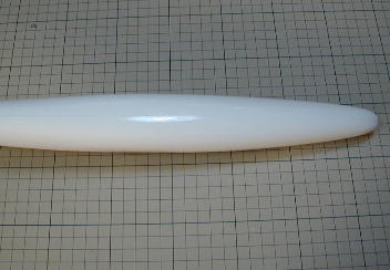 | 胴体を細かくチェックしていると、グラスが浮いてゲルコートだけになっているところを 発見しました。 そのままでも問題は無いのですがきむらクラフトとしては放って置く 訳には行きません。 きりでゲルコートを崩し、エポキシパテで埋めました。 さらにアクリルラッカーで全体を塗装して仕上げました。 |
