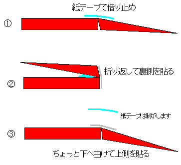 10ミリ幅に切ったウエットフイルム ![]() テープヒンジの施工例 |