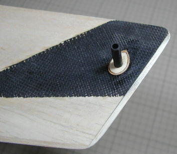 ダウエルは2oのカーボンロッドです。 長さは50oあり、受けた力を入り口を 支点として内部で分散しようって言う作戦です。 きむらクラフトの主翼はたいていこんな長いダウエルを使っています。 おかげで、この部分の破損は今のところ一つも有りません。 |