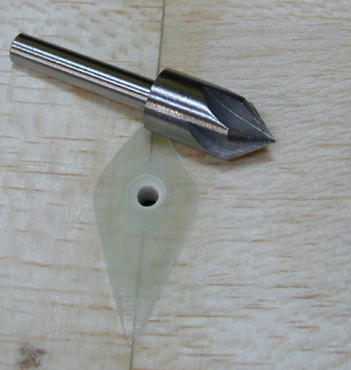 ネジの受け部分のアップです。 構造等に付いてはVirgil2K−SALの制作方法にありますので参考にして下さい。 写真に写っている工具は、”フリードリル”という物です。 きむらクラフトではこの道具を使って 皿穴加工をしています。 |
