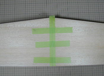 ダウエルを受ける部分の接着です。 3oバルサをエポキシ接着剤で付けています。 |