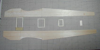 切り出した側板と胴枠です。 側板には鉛筆で胴枠の接着されるラインがマーキングしてあります。 キットで言うところの F10(主翼取り付け部補強材)は軽量化のために最小の形状に変更してあります。 また、ムサシノ独特の棒材から組み上げる胴枠も3oから2oに変更しました。 電動ですので 振動に対する強度があまり必要が無い事、予想される飛行重量が少ない事、最高速度が 標準エンジン機として組んだ物より低く予想される...事柄などからの軽量化です。 ダウンスラスト3°とサイドスラスト2°はこの時点で側板に施して置きます。 ダウンスラスト はオリジナルには無いのですが、前作のフォルクスプレーンで飛び具合が良かったので 入れています。 予想される飛行重量から主翼の揚力が勝ると言うのも理由の一つです。 胴枠等に使う材料は、バルサシートのなかで一番堅そうな所を選んで使っています。 バルサシートをZライトなどにかざして、目が詰まって暗く見えるところがそれです。 逆に明るく見えるところは軽くて柔らかい..と言う事になりますね。 一枚のバルサシートでも色々な部位があるんですよ。 |