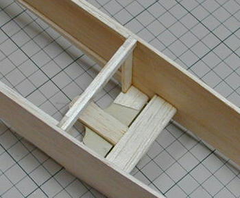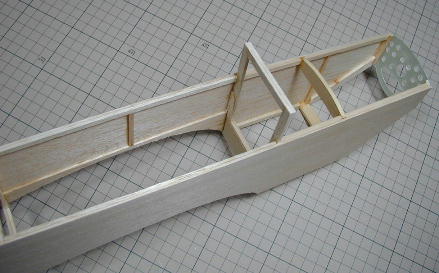 各部の補強とモーターマウントを取り付けました。 この段階ではモーターマウントは側板に芋付けで接着されているだけです。 横方向の補強は2×3o、縦方向は2×2oのバルサです。 縦方向の補強はキットには 無い物ですが、側板をキットの3o厚から2o厚へ変更しているために面積の広い所では 簡単に変形してしまいます。 強度的には問題無いとは思いますが、フイルム貼りや 取り扱いの事を考えて追加しました。 ![]() モーターマウントはこの後上面プランクと下面プランクで上下から挟み込まれ、四方から 囲まれる形になります。 さらに前面にお面になる部材を接着すれば充分な強度が得られる はずです。 今回はスバル09号のオリジナルイメージを殺さないために、上面のボンネット 部分の高さは高低差5oと控えめにしてあります。 この数字はオリジナルが5oバルサを ボンネット材に使っているのでそれに合わせたものです。 プランク材は上下面とも2oバルサです。 |
