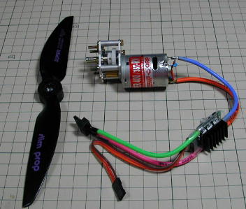 今回使用したユニットも毎度おなじみQRPのHYPER400/35に同じく同社のギヤユニット。 ギヤ比も付属の2:1で8×4のペラ(画像はグラウプナーのSlimPlop)を回します。 スピコンが今回初採用のGWS ICS−400と言う物。 余り紹介されていないので性能の程は?ですが、軽量なのと近くの模型店に置いてあった ので、採用となりました。 アルミ製のヒートシンクが付属されています。 ちなみにブレーキ機能はありませんので飛行機専用と言ったところです。 回してみると、スピードのコントロールは今まで使っていたシュルツに比べるとスムーズ ではありませんが、バッテリーをつなげた時の”暴走”はありませんでした。 スイッチは付けてませんので、これはありがたい事です。 このユニット、テストベンチで600AEの7セルで8400rpmで回りました。 一般的にはムサシノ機体は540で電動化される事が多いですね。 少し前はダイナテック02Hと言う傑作モーターに京商のギヤダウンユニット、10インチの プロペラを回す組み合わせが主流でしたし、Eプレイリーと共にムサシノモーターが登場した 去年あたりからは、ムサシノモーターによるダイレクトドライブもずいぶん増えました。 ですが、そこはへそ曲がりのきむらクラフト。 「最小パワーによる普通のフライト」を スローガンに400モーターを採用しています。 モーターはこの様に取り付けられます。 モーター缶が見えますね。 冷却、良さそうですねー。 |