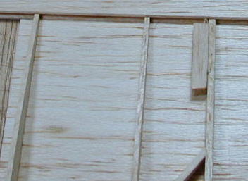| 上面プランクはいつもの通り、低粘度瞬間接着剤で染みこみ防止をした後に、 高粘度瞬間接着剤で上面プランクを貼って仕上げます。 フラップは後縁を1ミリ弱まで薄くしたテーパー状に整形して取り付けてあります。 |