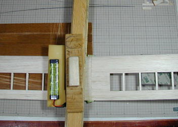 上反角も若干変更しています。 ノーマルのものより中央部は大きめ、翼端部は少な目にしています。 これは、きむらクラフトがSAL専用翼として製作したVirgil2k−SAL翼の 取り回しに木村が気に入った為です。 主翼後縁で中央部は8° 翼端部17°に設定しました。 また、今回はネジロック式にしましたので、フラップは中央まで延長してあります。 ![]() 接合には5分エポキシを使用しました。 下面を紙テープで固定し、接合面両面に薄く擦り込むように接着剤を塗り、 接合します。 はみ出した接着剤は、硬化前に綺麗に拭き取って置きます。 ![]() 接合が終わり、ダウエルとロックネジの穴加工が終わったら、マイクログラスで 接合部を補強しました。 普通ですとこの作業は特に必要のない作業なのですが、 リブを加工する時にリブ厚の確認を怠ったために、この主翼の接合部分のリブは 不本意ながら2ミリ厚の物が来てしまっているためです。 20ミリ幅に切ったマイクログラスを樹脂で貼り、テレホンカードでしごいて余分な 樹脂を落とします。 |