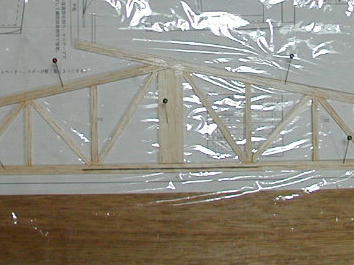 水平尾翼の組み立てです。 キットから製作する場合、特に変更点はありません。 今回製作した機体も サイズ、デザインともにノーマルと同じです。 この機体はスクラッチですので、尾翼は2ミリバルサで組みましたが、キットからの 製作の場合は、組み上がった後サンディングボードで2ミリ程度まで肉厚を落として 下さい。 ランチ時などの抵抗が減ります。 後縁の黒い線は自作0.5ミリ(位)のカーボンロッドを補強として埋め込んでいます。 これは、カーボンクロスからほつれた糸に樹脂を染みこませて作った廃物利用品 ですが、この様に補強として使用するなど色々な用途があります。 垂直尾翼も同様に組み立てます。 こちらもノーマルな形状です。 組み上がった水平尾翼です。 動翼は2oバルサで、後縁を1ミリ以下になるまでテーパーに研ぎ出します。 更に両端に目の違うバルサを接着し、捻れ防止としています。 こちらは垂直尾翼です。 ラダーはお遊びで1oバルサのリブを入れてみました。 普段は2oバルサの単板で作ってフイルム貼りで捻れてしまったりで悩むのですが、 この尾翼、そのあたり強くて安心してフイルムが貼れました。 ちょっとした収穫です。 右の一回り小さなラダーは旧型の尾翼です。 低抵抗化を狙って組んでみたのですが、 採用は新型の方にしました。 今回、動翼のサイズは設計図通りですが、よりクイックな初期反応がお好みとか 私の機体より更に軽量(翼面荷重7.5g/dm2以下)な場合は、1割ほど面積 を増やした方が良いかも知れません。 |