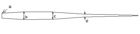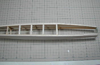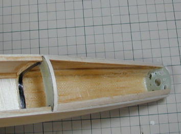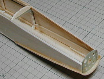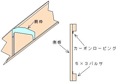 胴枠を組み込んだ胴体です。 側板の隅は5×3ミリバルサとカーボンロービングで補強してあります。 また、リンケージ用のロッドはこの時点で組み込んであります。 6°のダウンスラストはこの時点で側板に付けてあります。 ![]() ”b”の部分の胴枠はスペース確保の為に特殊な取り付け方法を 採っています。 胴枠自体はFRP板で上半分しかありません。 これを補強に入れてある3×5ミリバルサに接着してあるだけです。 後に胴枠の捻れ剛性を上げるべくカーボンロービングを半周させます。 ![]() 上の図は、テール部分です。 リンケージ用ロッドのガイドになるプラパイプを補強材のすき間に 挟むように埋め込んでいます。 サーボベッドもこの時点で作り付けました。 |