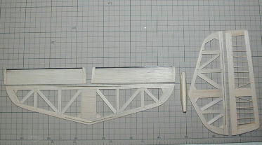生地完状態の水平、垂直尾翼です。 構造はほぼ一緒ですが、垂直尾翼の固定翼部分は前後方向に短く なっています。 また、水平尾翼の動翼の後縁にはアサミで購入した カーボンリブキャップを溝を掘って接着して補強しました。 後縁を薄く 削る為の手助けにしています。 バルサは全て2ミリで、堅い部位と柔らかい部位を組み合わせて剛性 と軽量化に勤めています。 組み立てはほぞを作ってはめ込んでいます。 台座はバルサブロックよりの削り出しで、側面にマイクログラスを瞬間 接着剤で貼って割れ防止としています。 ![]() |
