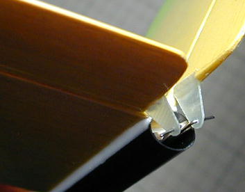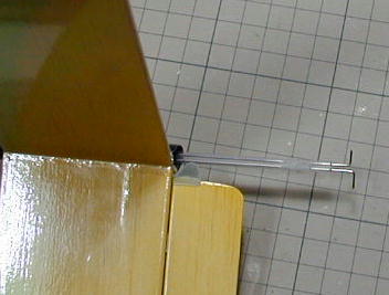 テールエンドはこの様になっています。 コントロールロッドはホーンに刺さっているだけで、抜け止めは特に 施していません。 取り付けるとはホーンとロッドの両方を変形させて 差し込みます。 |