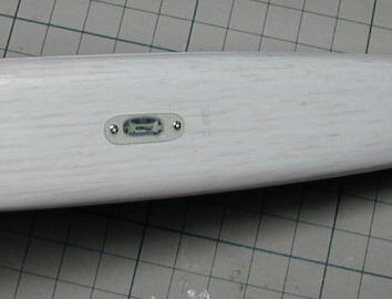 ノーズブロックです。 これもテールヘビー対策が施してあります。 くり抜いた穴は、CR2に合わ せてあり、胴体を貫通してノーズブロックにCR2がウエイトとして飛び出す 作戦です。 |