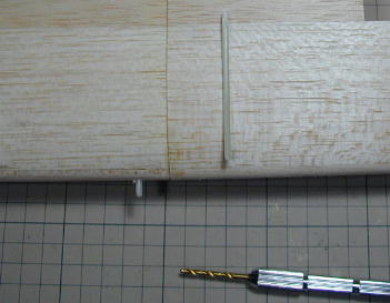 以上に長いダウエルです。 これもは、スパーまで貫通していて、スパーと 前縁の2点でダウエルを支える構造の為です。 |