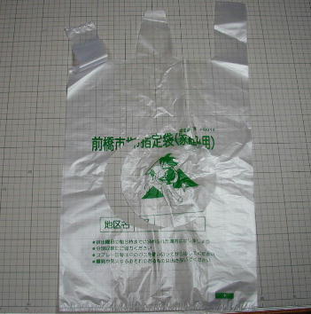 | メインになる材料は”ゴミ袋”などのポリ袋です。 私の住む前橋市では、ゴミ袋と言うと御覧の透明な物になってしまいますが、 色の付いた物の方が視認性が良いでしょう。 その袋を直径150oほどの円形に切り取ります。 |