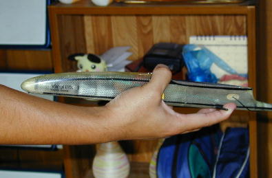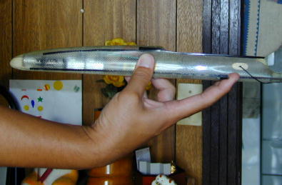 | こちらはフィンガーホールタイプの場合です。 人差し指、中指の二通りをやってみました。 これは一般的な人差し指タイプです。力が入りやすそうにも思えますが、 人差し指をよほど柔軟にしないと指先まで一体となったランチが難しく思えます。 またテイクバックで機体が進行方向に向かせ辛くなります。 保持も指先だけになっていますね。 野球的フォームを好まれる方はこちらの方が楽かも知れません。 こちらはきむらクラフトがやっている中指タイプです。 ホールドの感じはバータイプの物と同じ感じになっています。 こちらの持ち方ですとオーバースロー風のランチになります。 悲しいかな私がこスタイルを取ると関節の堅さから手が返りきれず 機体を水平に保持するのがちょっと辛いです。 |