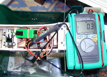 HLGでよく使われる5.4gサーボの グラウプナーのC1041は、上の画像の様にして計りました。 コネクター部分から−のコードを抜いて延長して、その延長部分にクランプセンサーを入れます。 バッテリーはCR2*2、受信機はフタバのR114Fです。 このサーボはGWSのPiko−STDのOEM品で、スピンドル部にベアリングが入っています。 テストのサーボは新品の物です。 まず、実際のフライト程度にじーこじーこ動かすと、0.0と0.1Aの表示を行ったり来たり。 次に良く「負荷が掛かると電気を食う」と言われているので、サーボには可哀想ですが、手で ホーンを押さえて動かしてみましたが、表示は無負荷の時と変わらず、0.0と0.1Aの表示を 行ったり来たりで変化がありません。 「??そんなはずは」と?マークを浮かべつつスティックを左右に振りきれる様に動かすと0.2A。 「じゃあ、これならどうだっ!」とばかりにスティックを激しく左右に動かすと、画像の表示の数字、 0.3Aを記録しました。 どうやら、振り切りからの切り返しで電流が上がるみたいです。 |