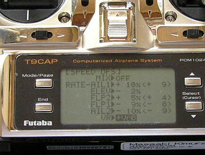 以上の設定で、フラップの付いた機体の飛行は一応できます。 木村のレベル ではこの設定で充分なのですが、もう少しグライダー用に使えると良いですね。 理想は各モード別にセッティングが出来て、指一本でモード切替出来たら嬉しい ですね。 |