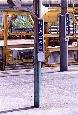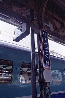 | 両国駅の地平ホーム。 よく考えたら、1975.3改正で消えたDC急行のさよなら運転以来でした。 きょうは、「ニューなのはな」を使用した臨時電車の運転日。 地平ホームはまるで時間が止まったままのようでした。 でも、ガランとしたホームには売店はおろかベンチすら無く、 「りょうごく」の駅名標が唯一栄華を偲ばせているかのようでした。 (2001/07/28) |