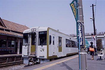 | 上越線の撮影には八高線を利用しています。 途中の車窓で、目を凝らしていると幾つかの駅で ホーロー看板を見つけることができました。 しかしながら、窓の開かないキハ110系では 窓からスナップもできません。 ようやく機会を得て、目星をつけた駅を回りました。 (2002/04/14) |
