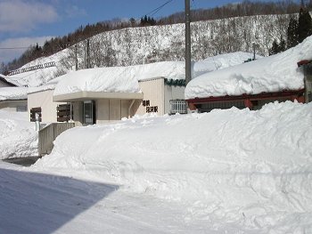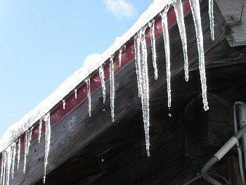 駅舎脇の倉庫の屋根から、見事?なツララが・・・。