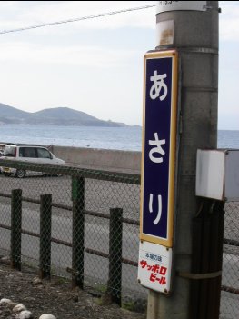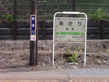 朝里駅にて。