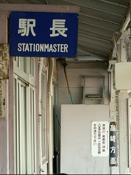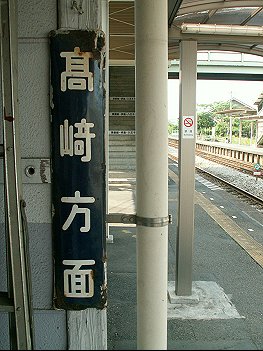 駅本屋の「駅長」と「高崎方面」のツーショット。