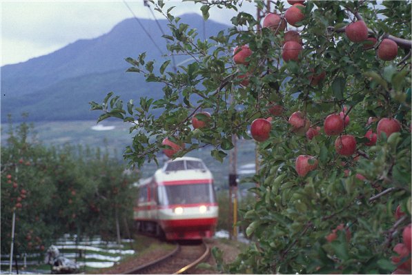 ロマンスカーの展望席から眺める林檎は見事だろう。