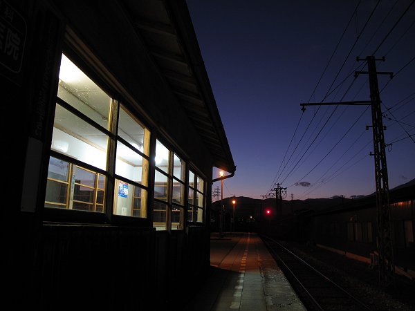 夕闇せまるホーム。待合室の蛍光灯が心なしか温かく感じる。