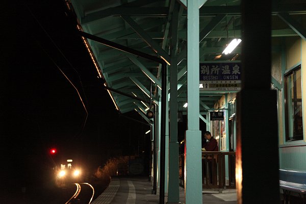 静まり返った駅に活気を与えるような下り列車の到着です。