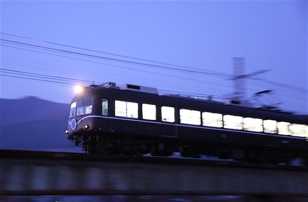 日も暮れて河原を吹き抜ける風も冷たくなった頃、轟音とともに夜間瀬の鉄橋を行きます。