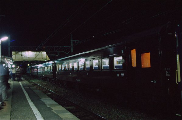 車掌室とデッキに灯る白熱灯・・・、暖かそうな明かりにほっとする。