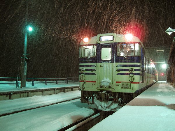 この程度の雪は何ということもなく、淡々と折り返し作業が進む・・・・・。さあ、間もなく発車だ。