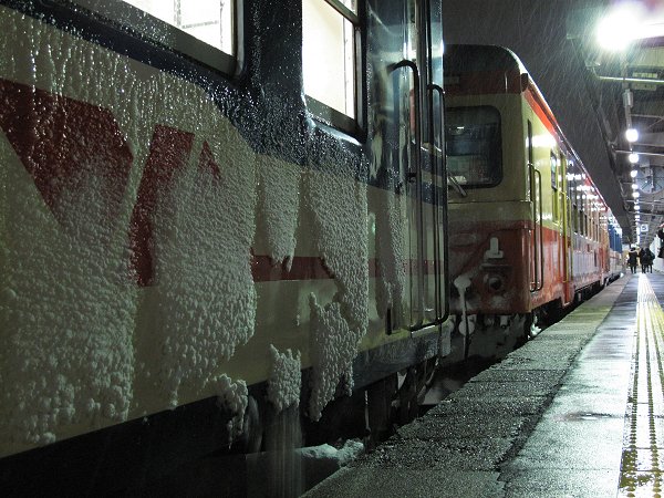 今年は暖冬のようであるが、下車した列車は厳しい表情を垣間見せていた。