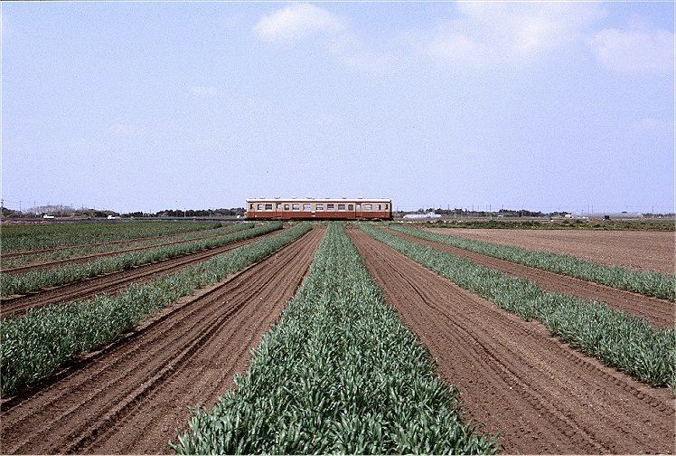 広大な風景を行く単行。遮るものの無い空間が清々しい。(磯崎ー平磯 2006/04/30)