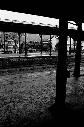 打吹駅のホームの向こうには静態保存のC11が居ました。