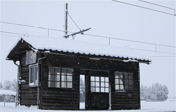 モノトーンの世界に待合室の格子窓が美しい。