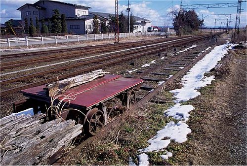 構内はずれには台車がポツンと残されていた。