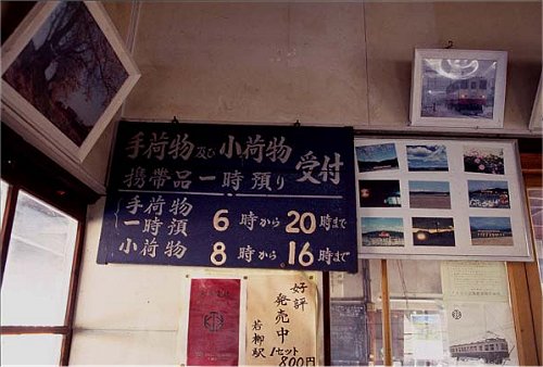 レトロなベンチに腰掛けて、待合室を見回すと、「手荷物」「小荷物」の文字。
