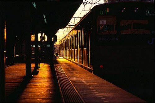 2月上旬の朝、太陽が線路の方向真っ正面に昇ってくる。