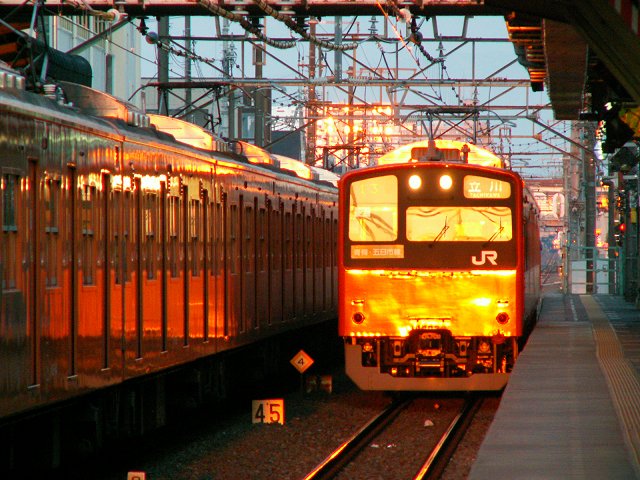 103系から201系、そして233系へと車両が変わりつつある。