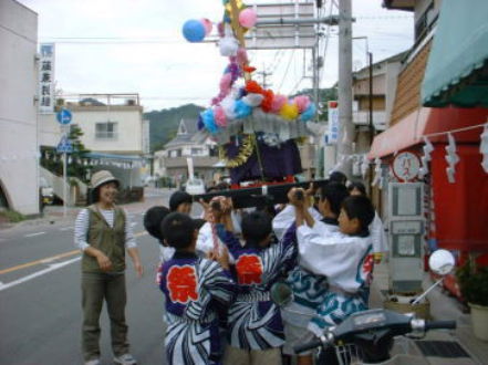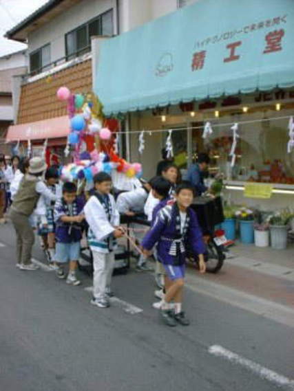 宇和部区の子供会のお神輿が、我が家の前を楽しく行きます。 |
