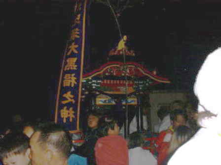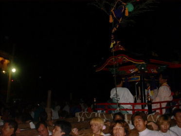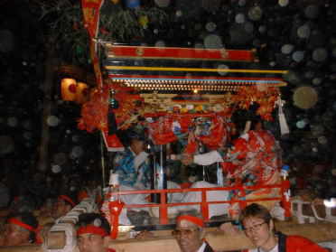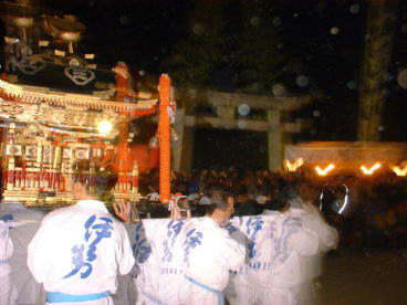 | ダンジリの上に、神輿を乗せて、境内を一周します。 | |