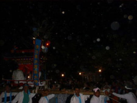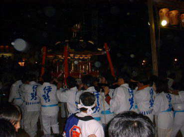 | 今年の宮入は、8時15分でした。 あっという間に、トラブルもなく終了しました。 秋祭りが終わると今年の、区長の役目も終わったようなものです。 |