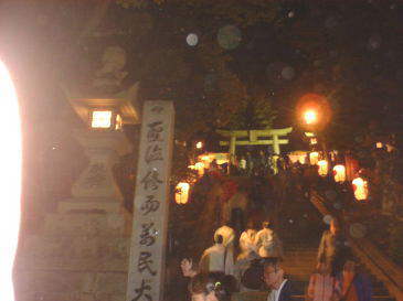 | 大山神社の石段です。ここをダンジリや神輿が、のぼったかと思うと 一番上から下まで一気に駆け下ります。 |