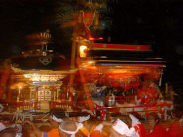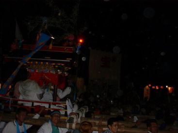 | ダンジリが勢いよく、まわり始めました。太鼓の音がお届けできないのが残念です。 | |